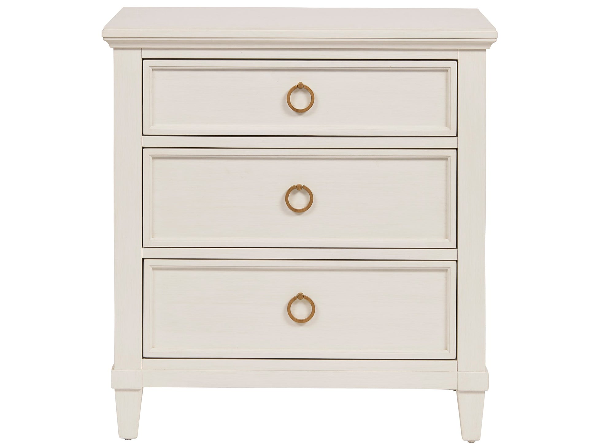 Bring classic appeal to bedsides with the Antibes Nightstand, featuring 3 drawers with bronze ring pulls, and a white finish.