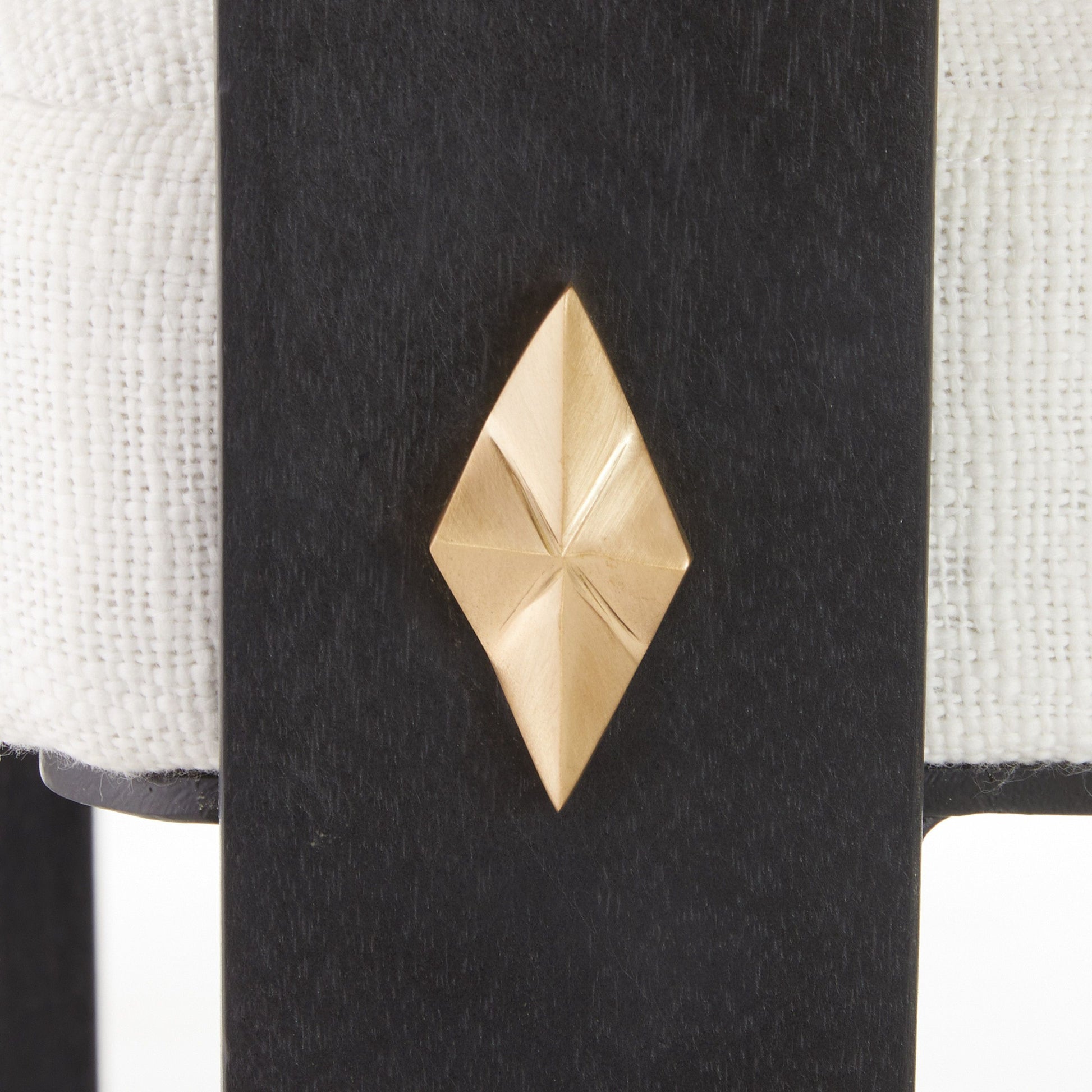 INSPIRED BY TRIBAL ART, THE CONFIDENT AZTEC ARCH BACK OF THE DURANGO ADDS A TOUCH OF DRAMA TO THE DINING ROOM. ACCENTED WITH ABSTRACT BRASS DIAMOND DETAILING ON EACH FRONT LEG, THIS MANGO WOOD ESSENTIAL IS STAINED IN A DEEP EBONY HUE. FINISHED WITH TEXTURAL CHANTILLY TEXTURE SEATING THAT IS PADDED FOR COMFORT. FINISH WILL VARY.
