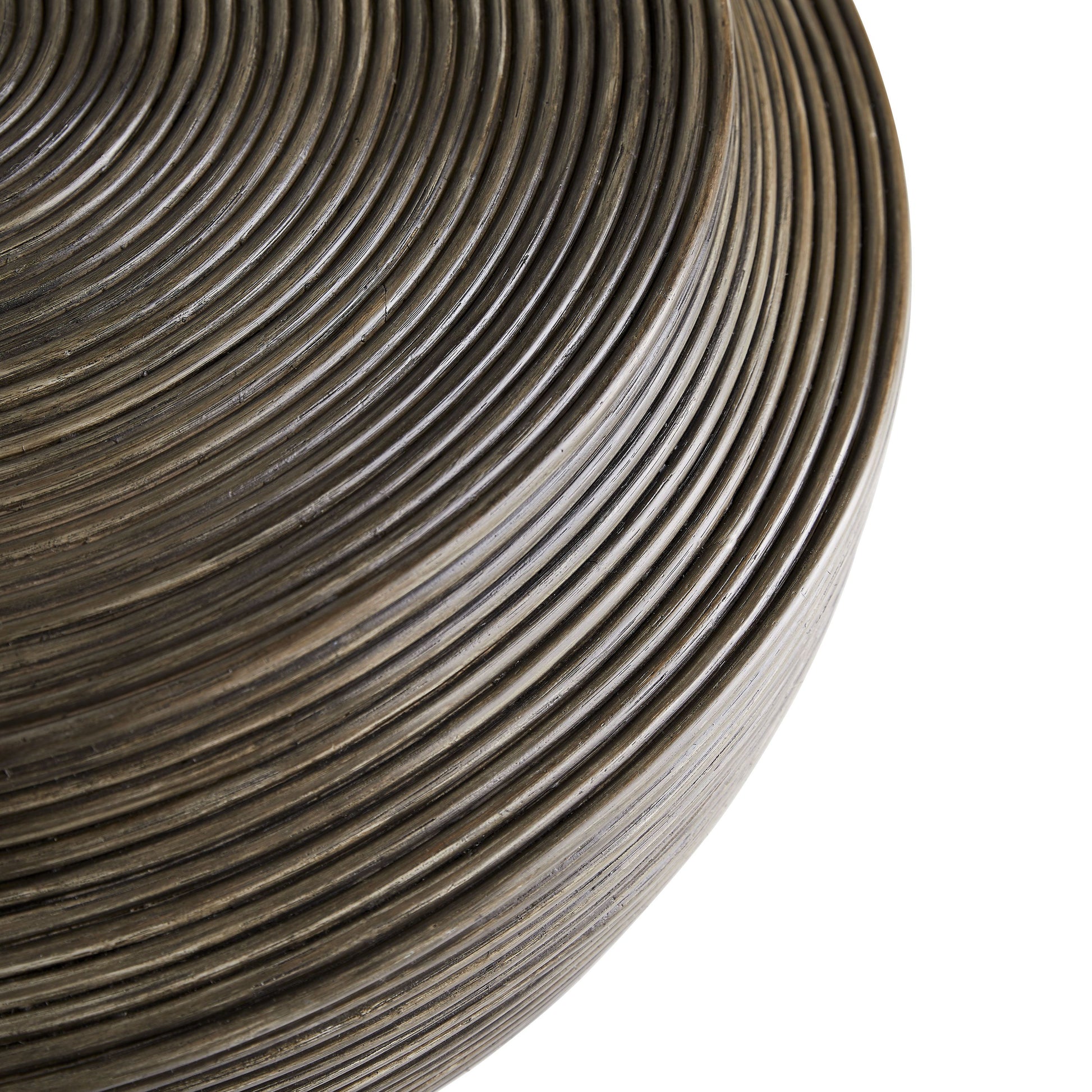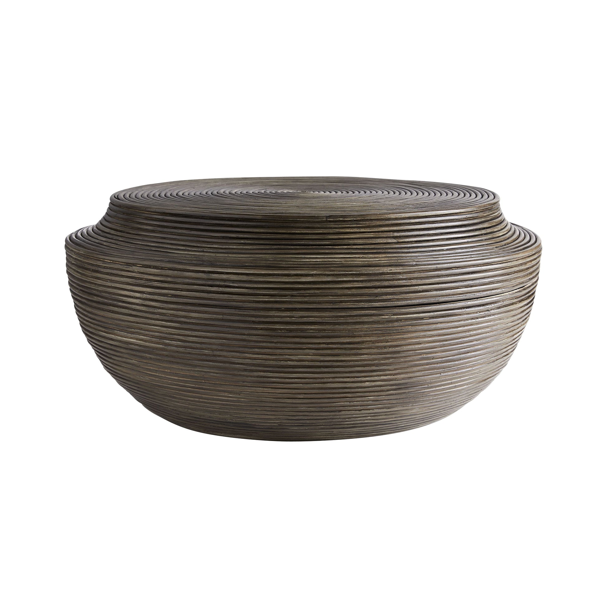 INSPIRED BY THE CLASSIC SHAPE THAT DEFINES TRADITIONAL ETRUSCAN VASES THIS FULL-BODIED COFFEE TABLE PUTS THE FUN IN FUNCTIONAL. WITH CURVES THAT SLIGHTLY TAPER AT THE TOP AND LEAD INTO A ROBUST BASE THIS PIECE'S SHAPE IS REMINISCENT OF CLAYSPINNING ON A POTTER'S WHEEL. IT IS CRAFTED ENTIRELY OF WRAPPED RATTAN FINISHED IN A TOBACCO WASH FURTHER ACCENTING ITS NATURAL COMPOSITION. A STYLISH AND ORGANIC CONSTRUCT FOR BOTH TRADITIONAL AND MODERN SPACES. FINISH WILL VARY.