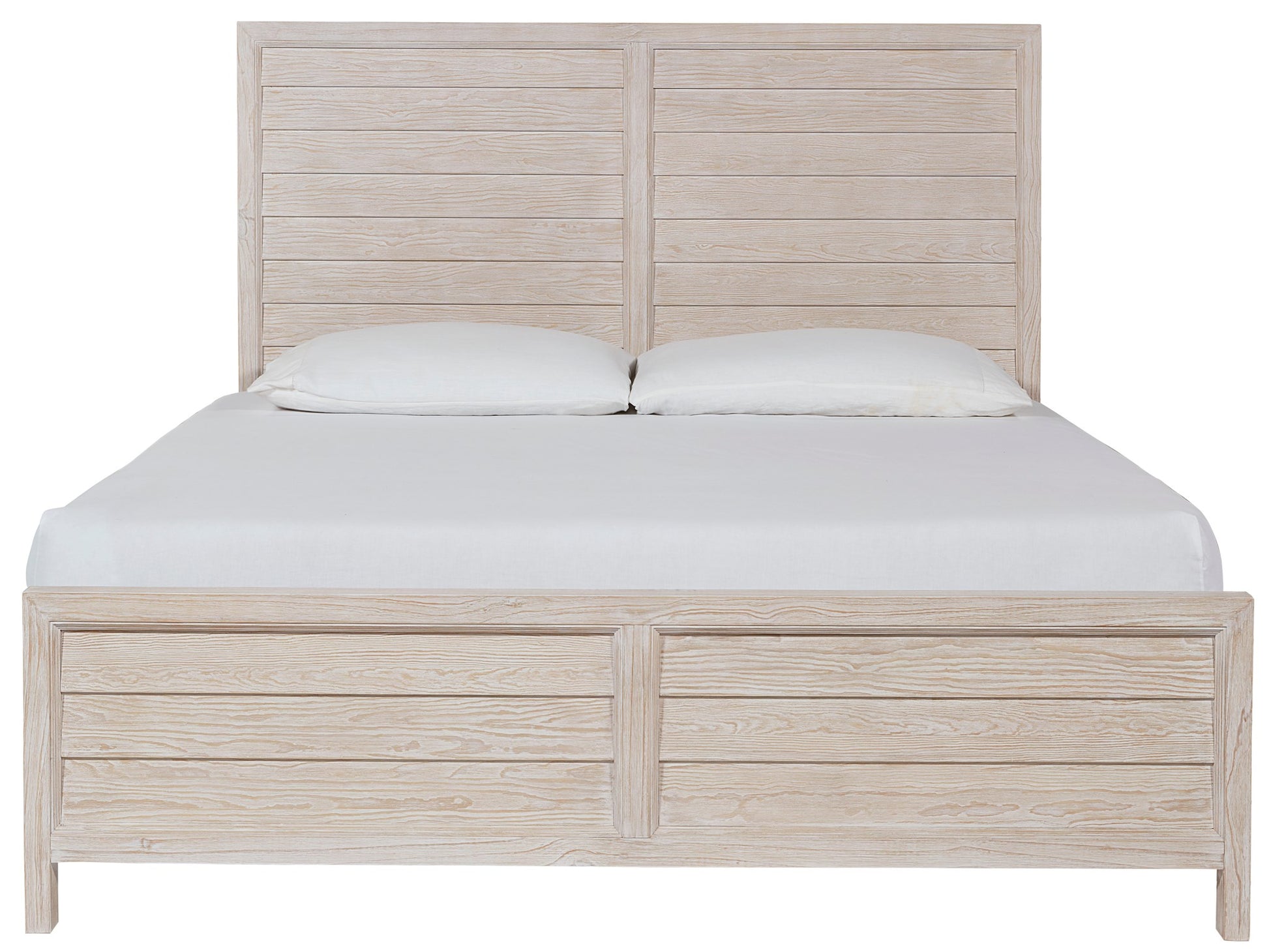Embodying coastal chic, the Getaway Panel Bed introduces airy elegance to any bedroom space with its layered panel details in a neutral finish.