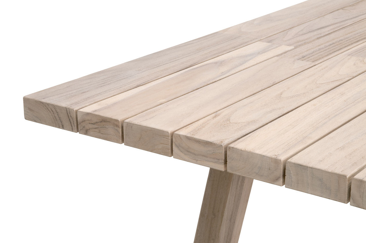 Woven Collection's "Gray Teak" is solid teak wood finished with a solution that expedites the aging process of teak to a natural silver tone. Over time, the natural weathering of Gray Teak will cause its appearance to change in color and texture, with possible marks and cracks. By ordering Gray Teak, you accept these characteristics and agree that no claim will be approved regarding the natural aging process of teak or the special color qualities associated with the Gray Teak finish. Special care should be taken to protect this natural finish.