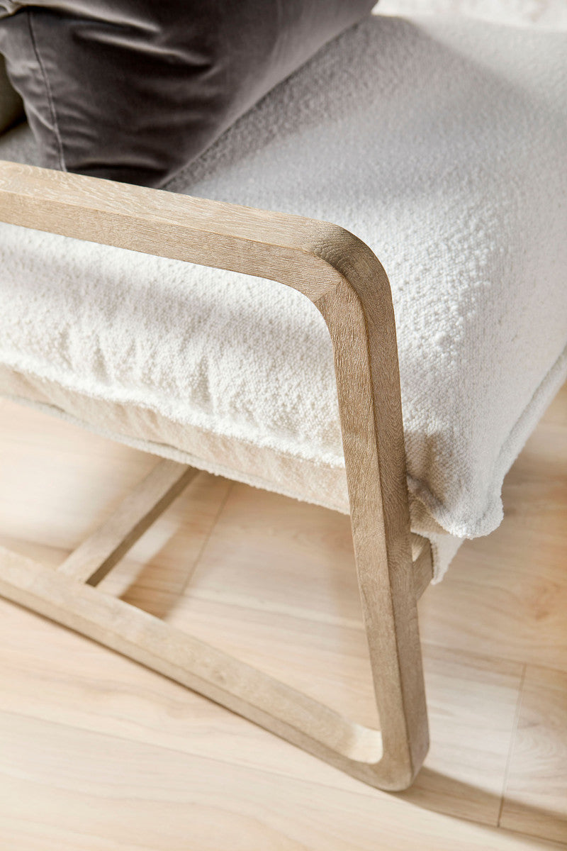 - Materials: Solid Oak Wood, 96% Polyester/4% Acrylic Fabric, Foam, Down Blend, Down Feather
