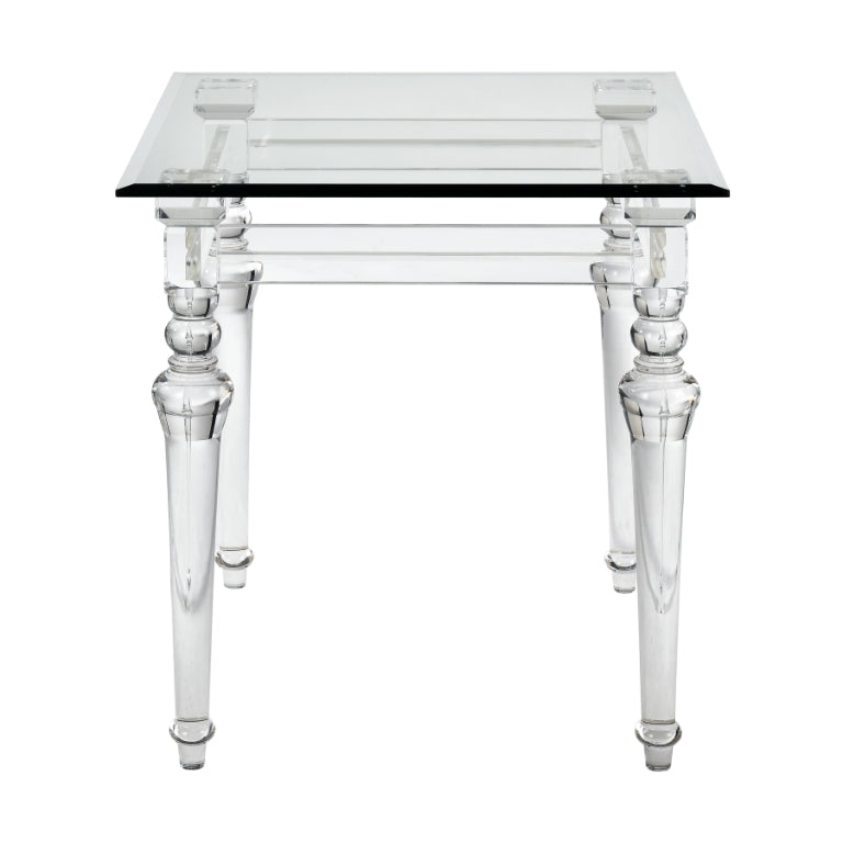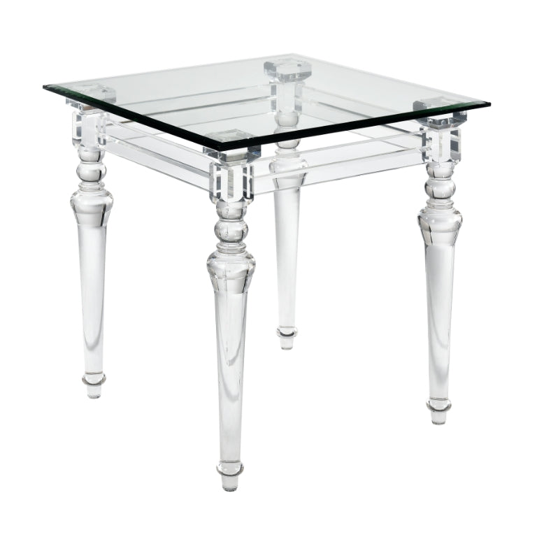 The Jacobs Square Accent Table adds instant glam to a modern living room or hallway. Made from clear acrylic, it supports a square table top and is perfect for adding an accent lamp to gently reflect and refract through its crystal clear surfaces to make for an eye catching display.