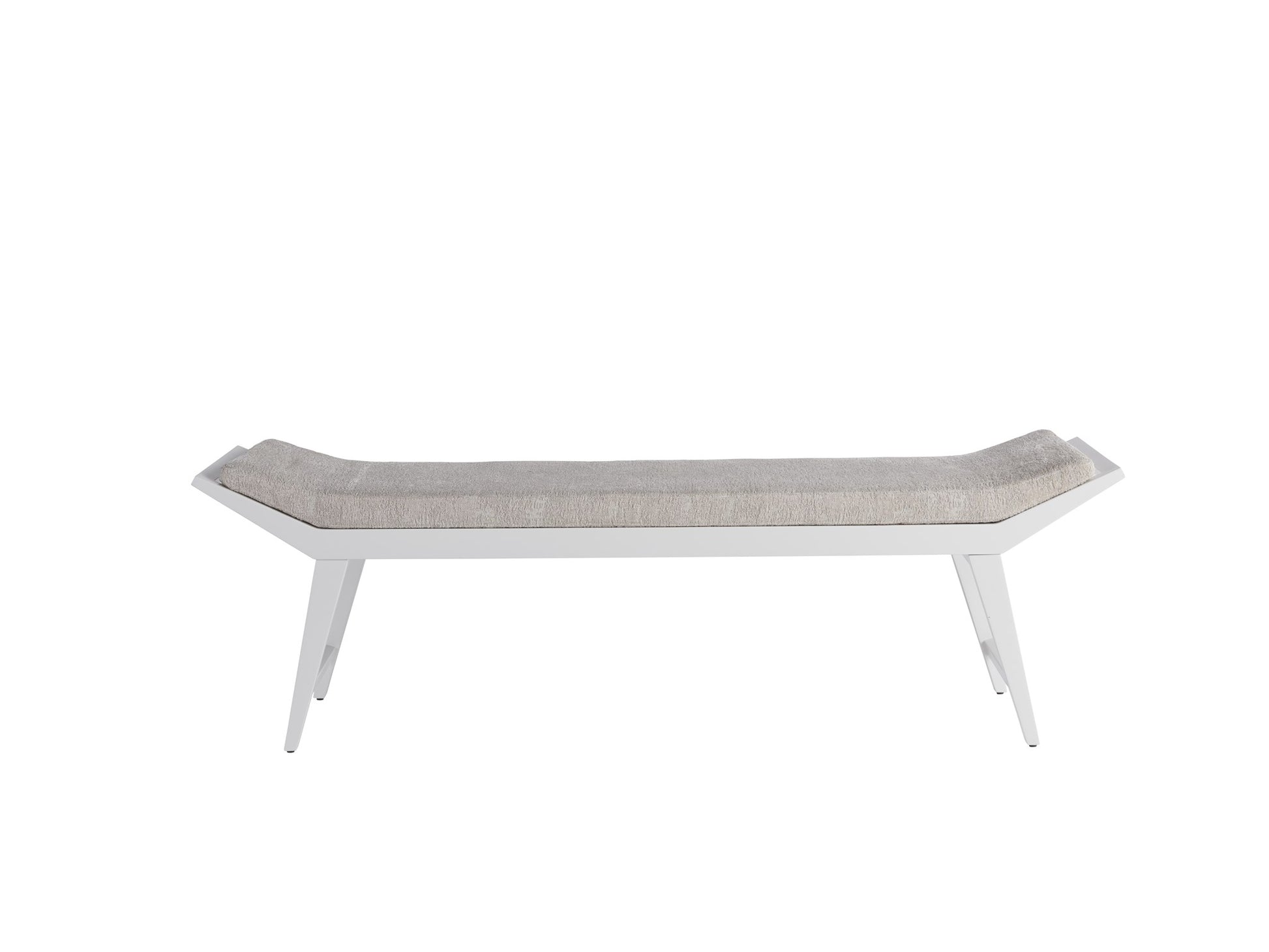 Equally beautiful as a stand-alone piece or at the foot of a bed, the Love Joy Bliss Bench evokes a casual elegance with a Bubbly Champagne upholstered seat nestled within a subtly curved white lacquer body.