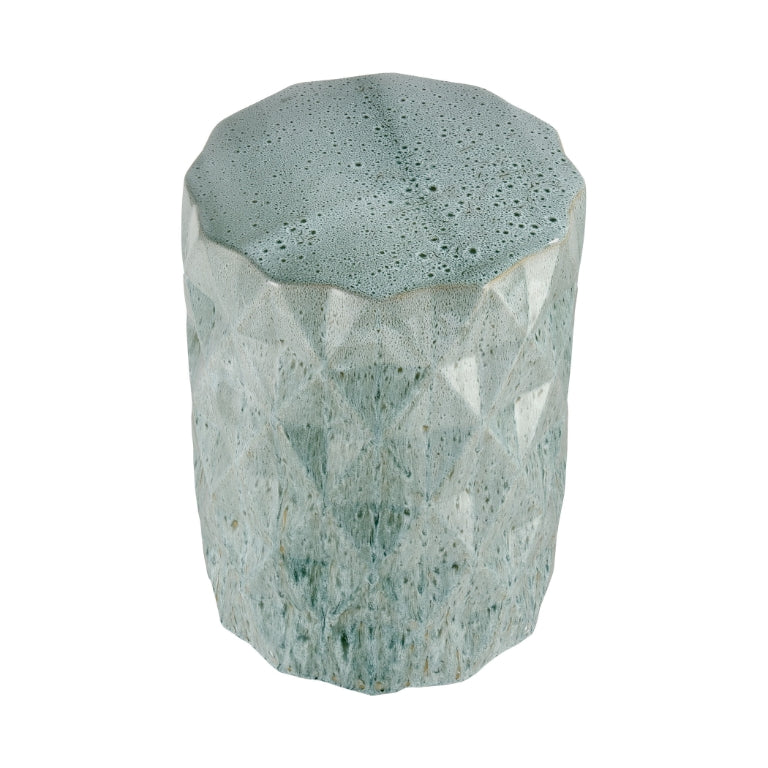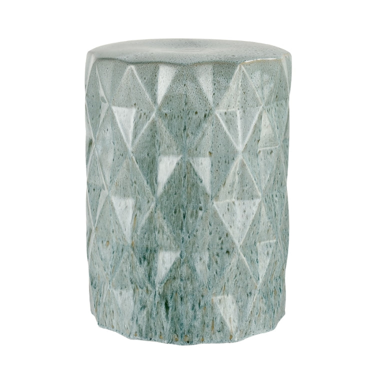 The earthenware Olmedo Stool is an eye catching way to add seating to a patio or decking area. Its drum shaped form features a faceted, textured finish in a charming seaglass glaze that introduces a pop of color to a seating area.