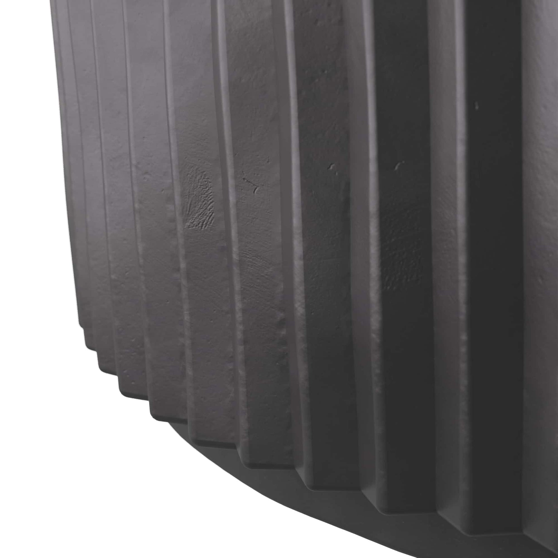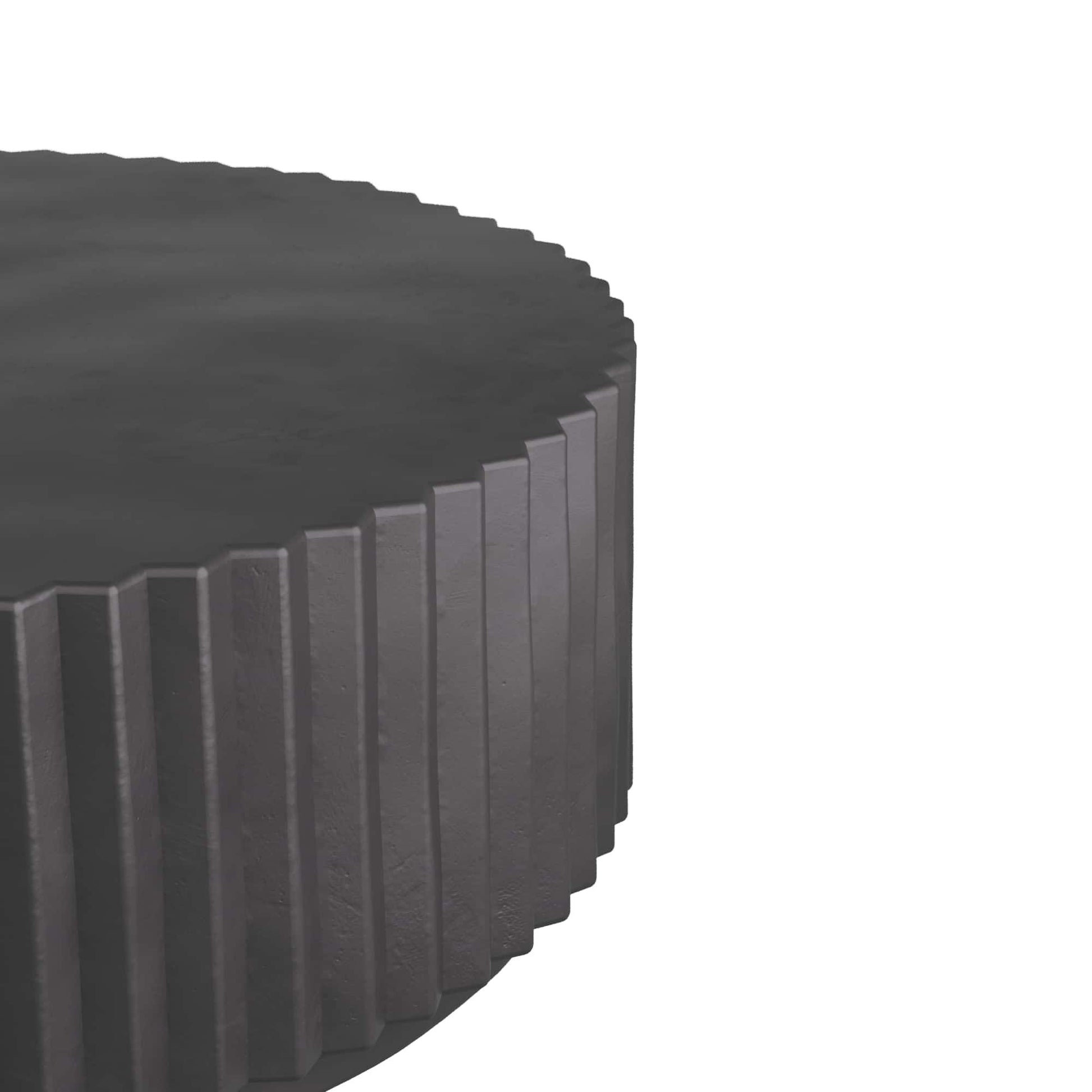 WITH RIBBED SIDE DETAILING RESEMBLING A MACHINE GEAR, THE REESE COFFEE TABLE IS STRIKING INDOORS. IN BLACK CONCRETE, THE TABLE BESTOWS A STYLISH EDGE TO ANY SPACE.