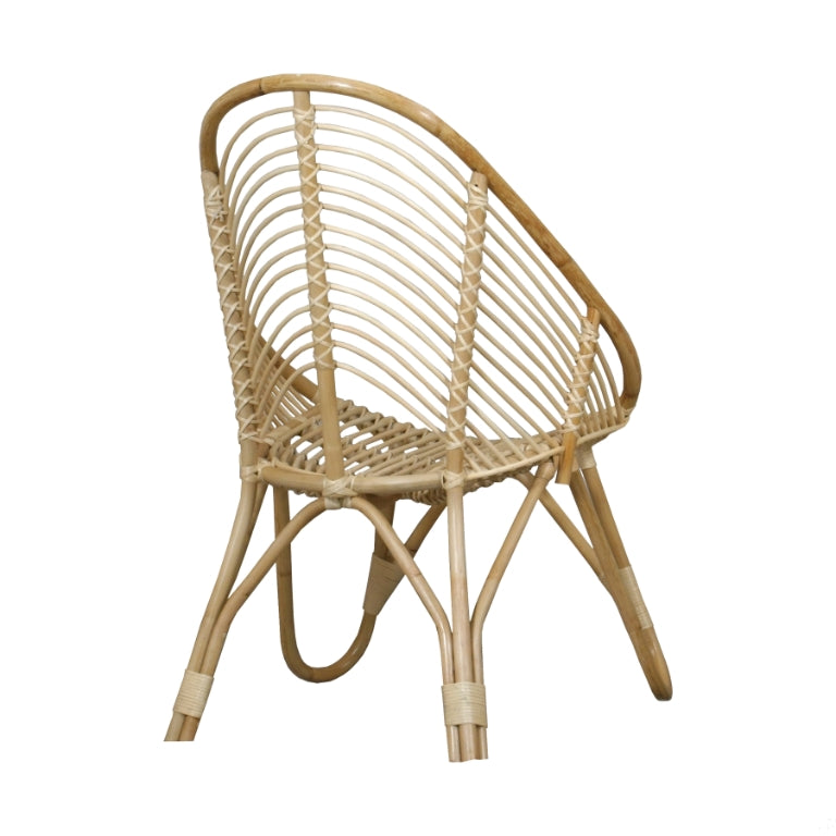 The Rendra Chair is a must-have piece for adding a vintage-inspired look to a living room, bedroom or indoor seating area. Its pleasing curved design adds a stylish silhouette while maintaining comfort. Handcrafted from high quality natural rattan canes and binding, this organically influenced design brings a warm and relaxed note to a home and creates inviting, informal seating for unwinding.