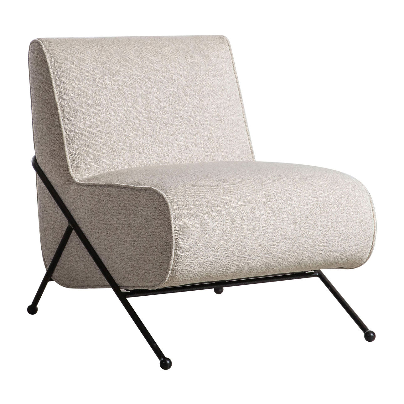 Subtle, effortless, and modern. The Roland Occasional Chair rests on a sleekly designed matte black metal frame. Wrapped in a light sand, cotton blend upholstery with a soft cushion seat and back rest. Whether you place it in your bedroom or as guest seating in your living room or home office, this upholstered chair is the ideal statement piece for any room!