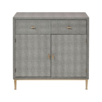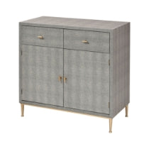 The Sands Point cabinet has its inspiration set in the early days of book and trunk binding when Shagreen (Ray fish skin) would be used as a hardy and tactile covering. Updating this style, we have chosen to opt for equally hard wearing Faux Shagreen to give this cabinet its beautiful, soft grey finish. Featuring 2 drawers and ample cupboard space this cabinet is stylish addition to a modern interior. Matching items are available in the Sands Point collection.