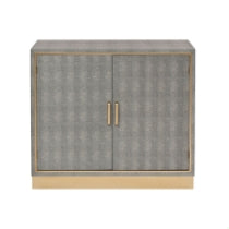 The Sands Point cabinet has its inspiration set in the early days of book and trunk binding when Shagreen (Ray fish skin) would be used as a hardy and tactile covering. Updating this style, we have chosen to opt for equally hard wearing Faux Shagreen to give this cabinet its beautiful, soft grey finish. Featuring an internal shelf and accented with gold handles, this cabinet is a stylish and useful addition to a modern interior. Matching items are available in the Sands Point collection.