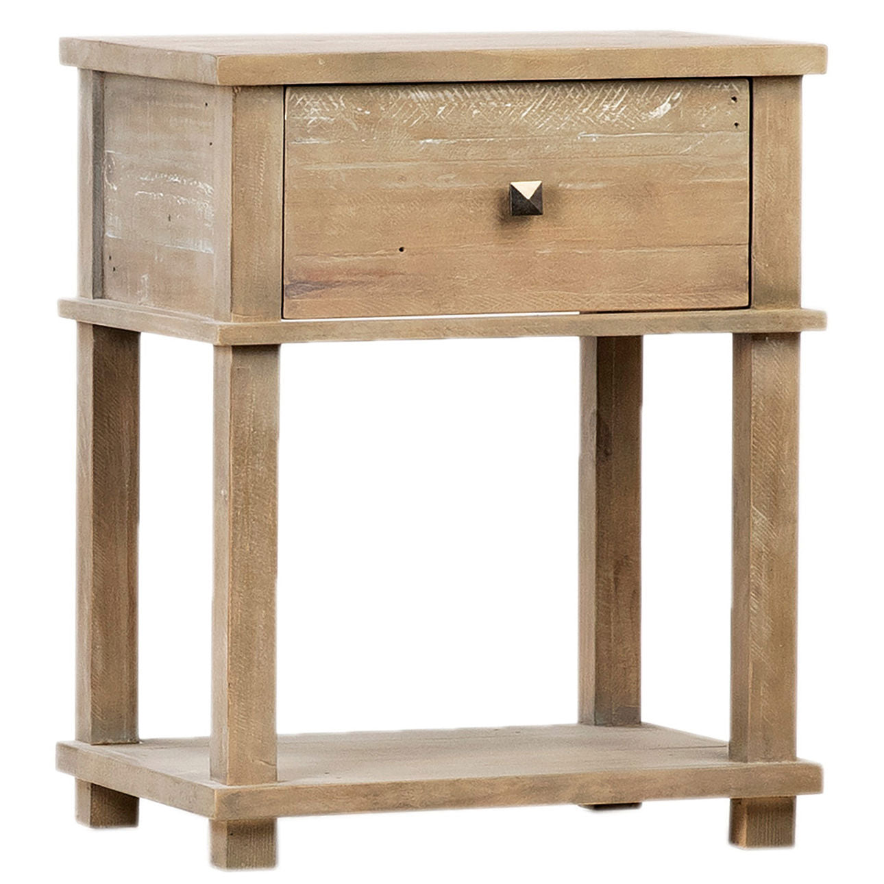 This charming side table brings rustic, modern farmhouse style to your bedroom, living room, or office. Made of reclaimed pine in an antique wood finish, this side table features a convenient drawer to store smaller necessities. ItÕs finished off with an attractive metal knob that adds to its charming design. Ideal for placing next to a sofa or bed.