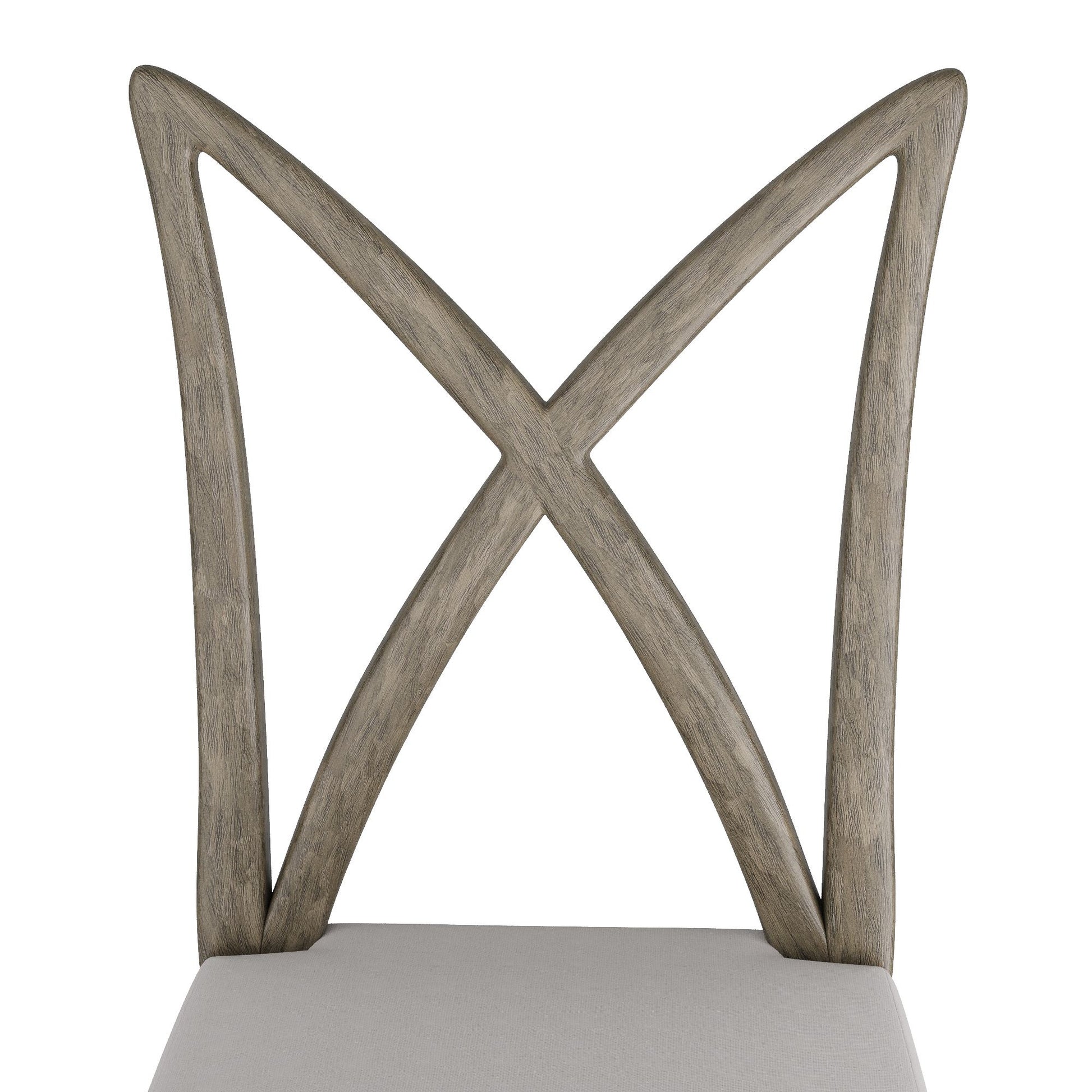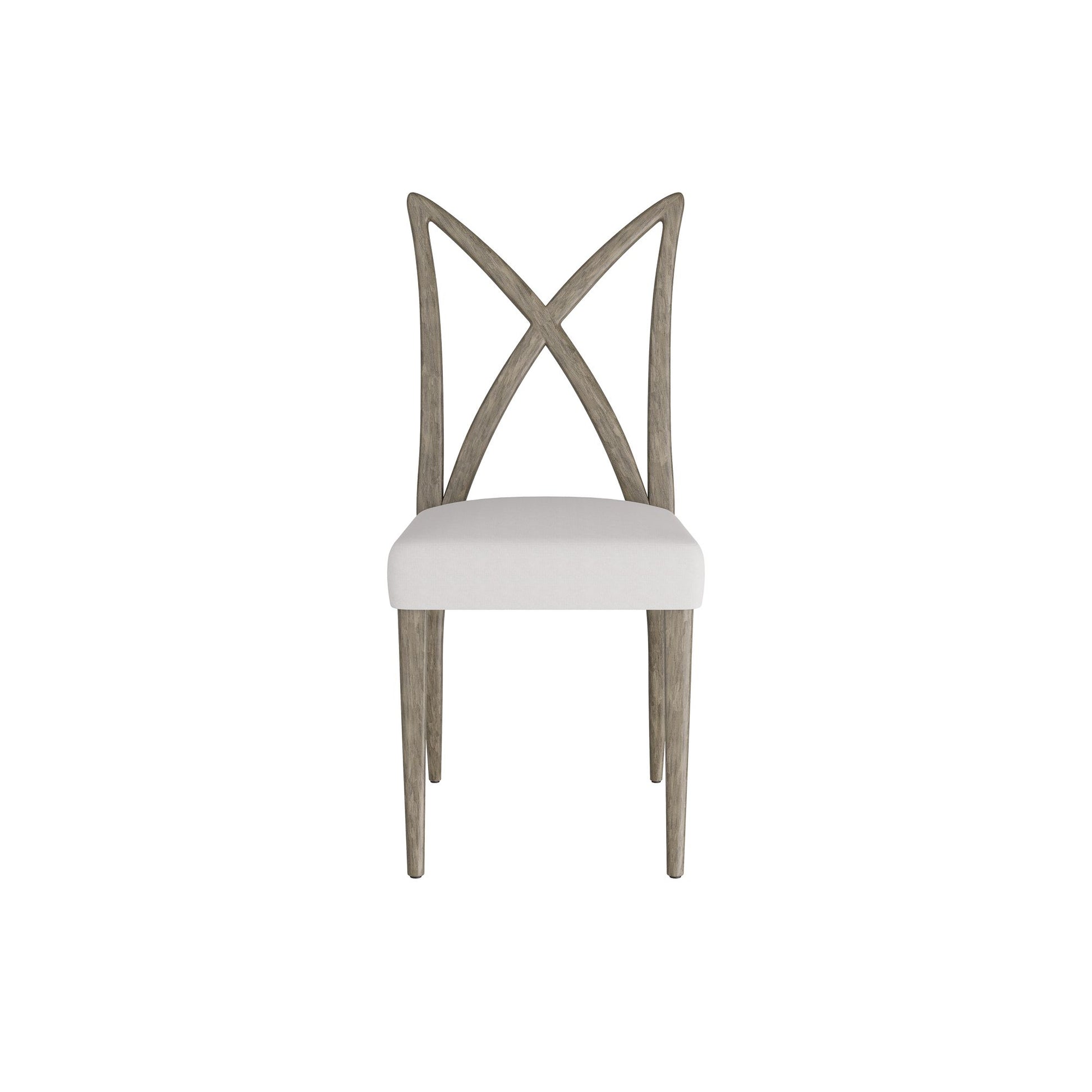 THE SLEEK LINES OF THE XAVIER WERE INSPIRED BY THE SCULPTURAL FURNITURE OF MID-CENTURY ITALIAN DESIGN. AN AIRY CROWN BACK OF STREAMLINED, CURVED SMOKE-FINISHED WOOD CONTRASTS A WIDE CUSHION SEAT OF TEXTURAL WHITE LINEN. TOGETHER, THEY PROVIDE A PLEASING FORM EVEN MORE IMPACTFUL WHEN MULTIPLIED IN A FORMAL SETTING.
